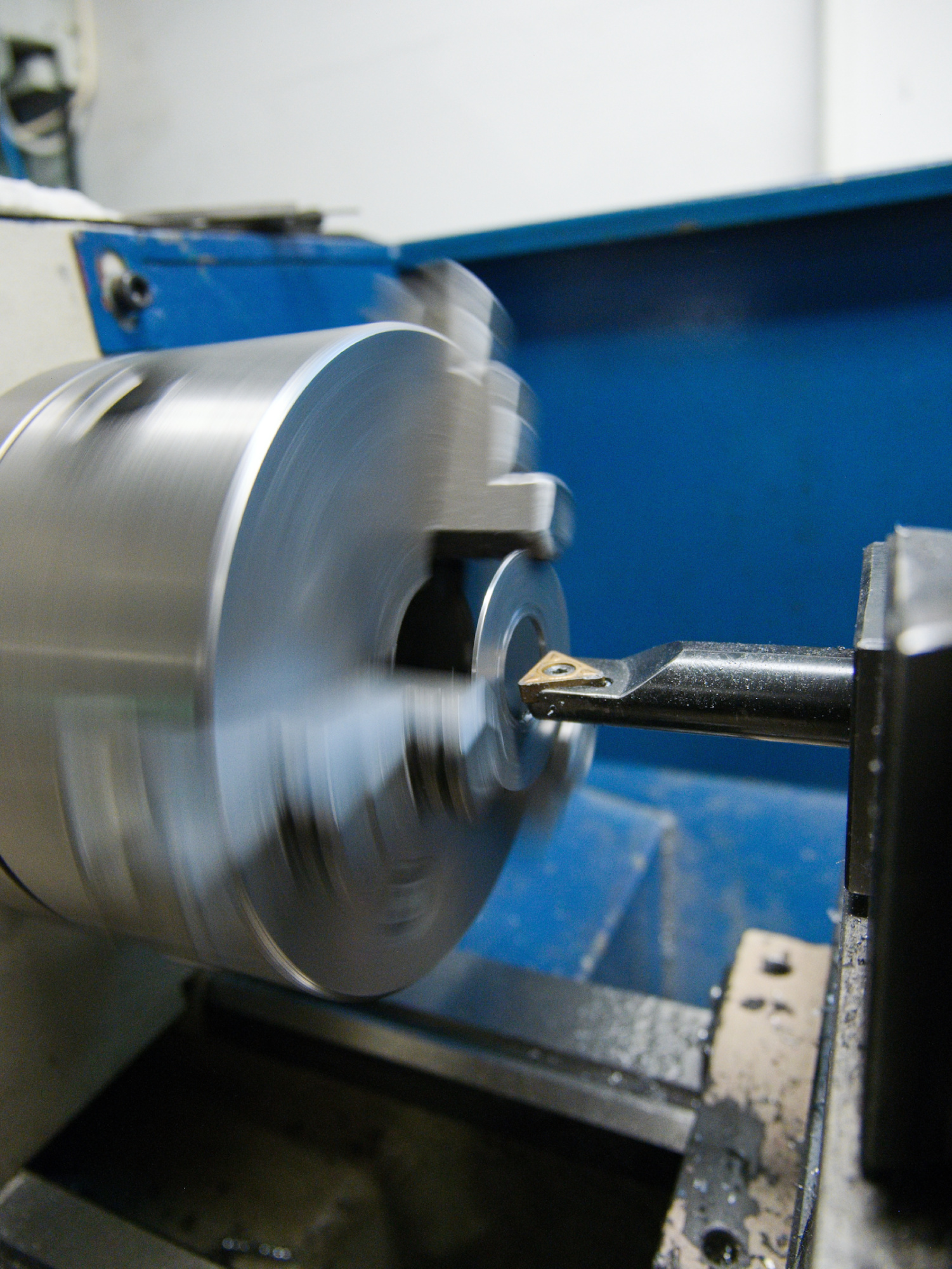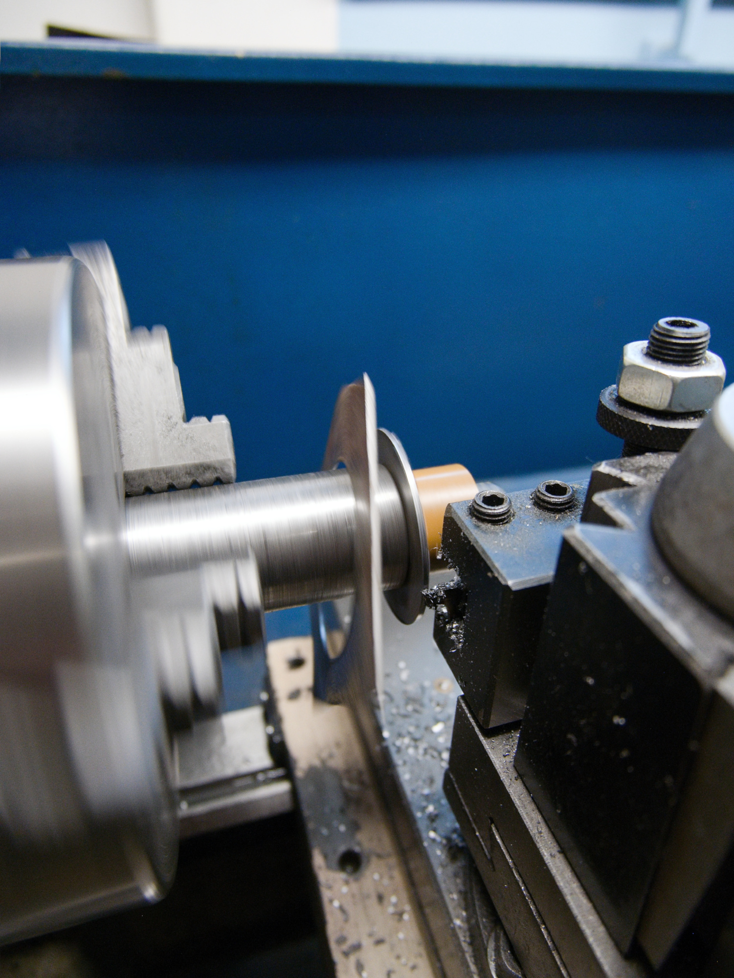 The disc gets fabricated from a piece of sheet metal on the lathe: