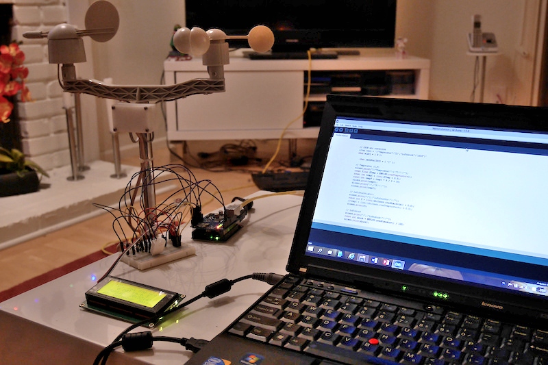 This translates to the following analog values using the recommended 10K resistor. The analog2index function returns the index (the wind direction) of the received value from the Arduino analog input port. Since the differences between the individual values is not constant, this mapping is the most precise mapping to get the wind direction.
