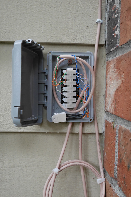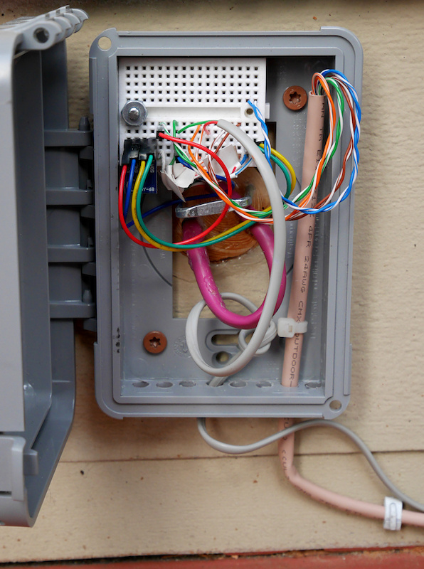 The junction box hosting the outdoor sensor for humidity and (shadow) temperature.