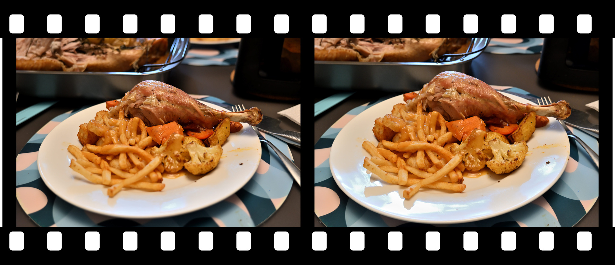 Simply stopping down the aperture for more depth of field would have rendered the plate sharp, but also flattened the scene, turning it into the kind of phone photo where the background looks lifeless. This blend keeps the plate crisp while preserving the softness behind it.