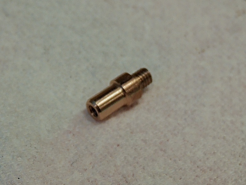 I made the connector out of bronze with M4 on the outside and M3 for the cap screw. Use a 3mm or 1/8" drill bit for M4 as this material is very soft.