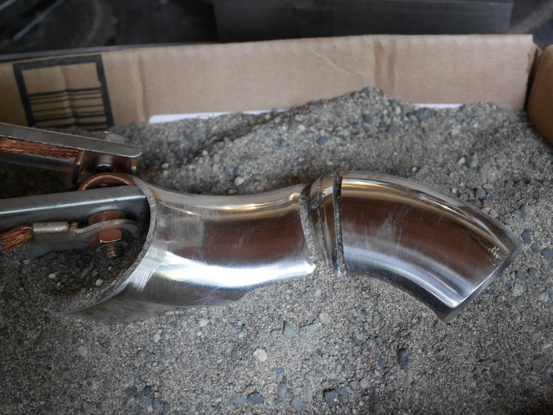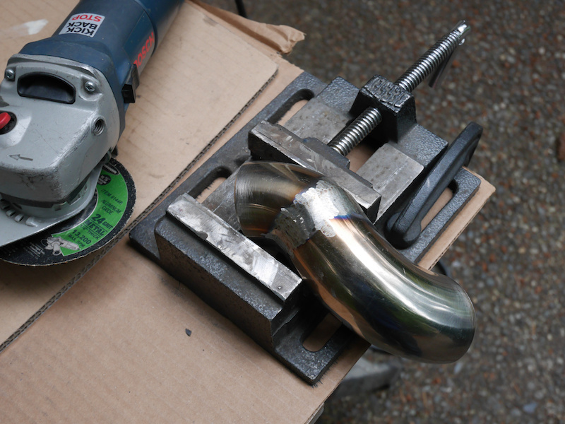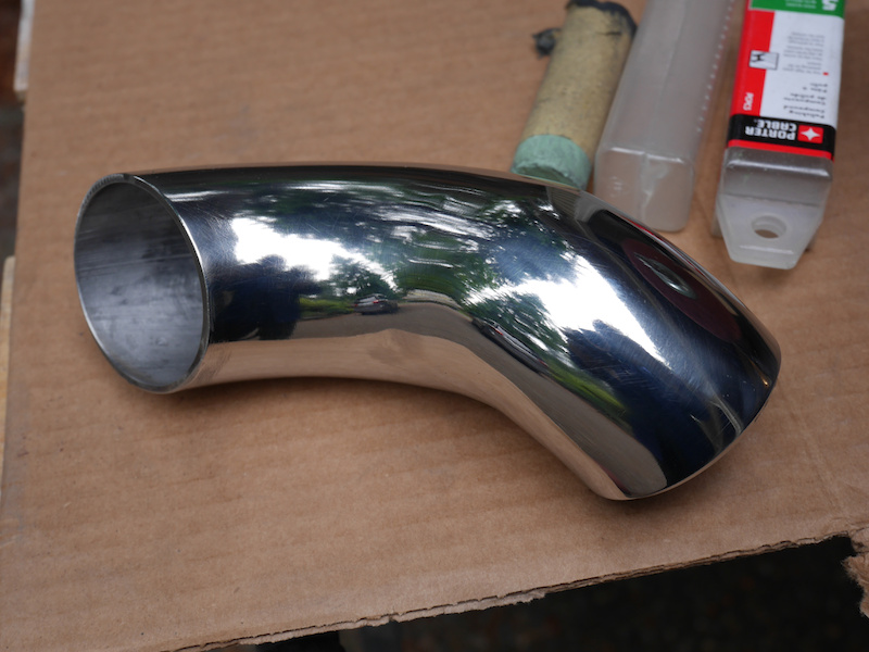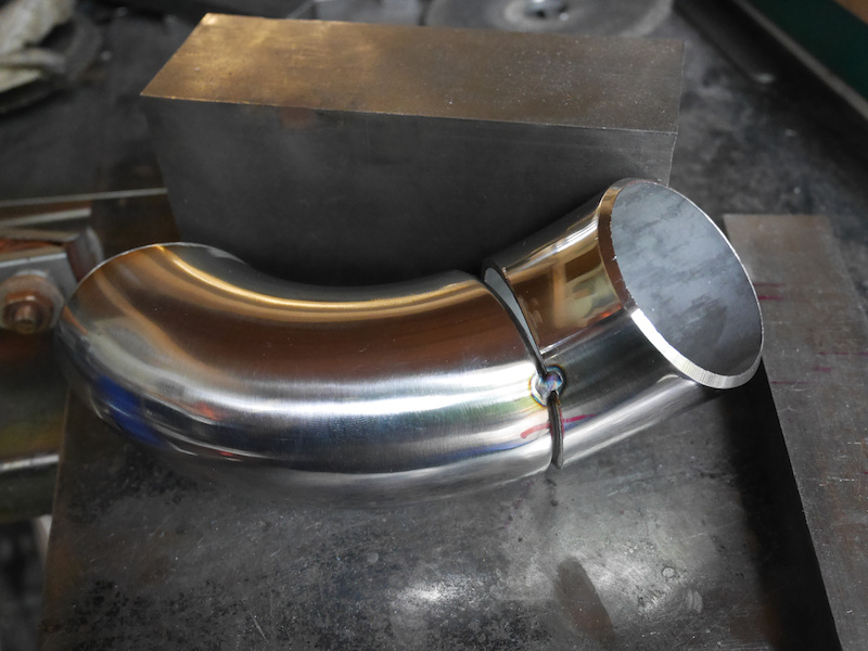 Using a 90° and a 45° stainless steel elbow with 3mm thickness seemed to be a good start.