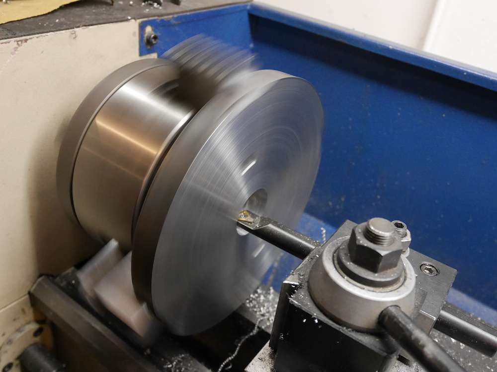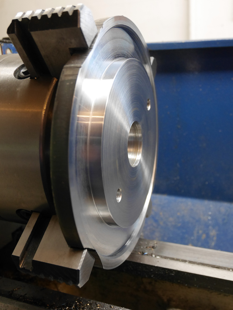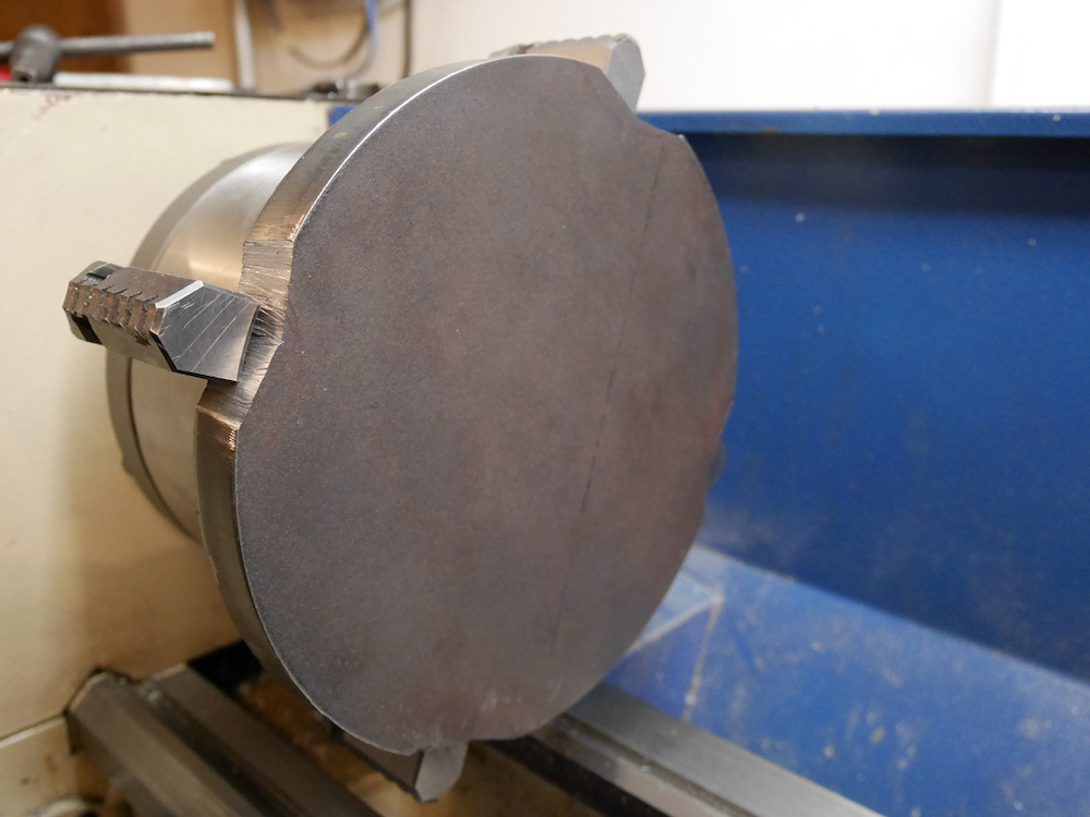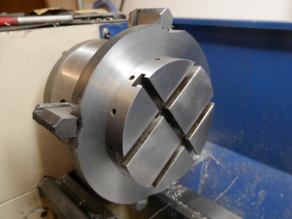 But a few mm to large for the lathe. To get the jaws a good grip and to pass the bed of the lathe, I had to cut out the four sides to make it fit.