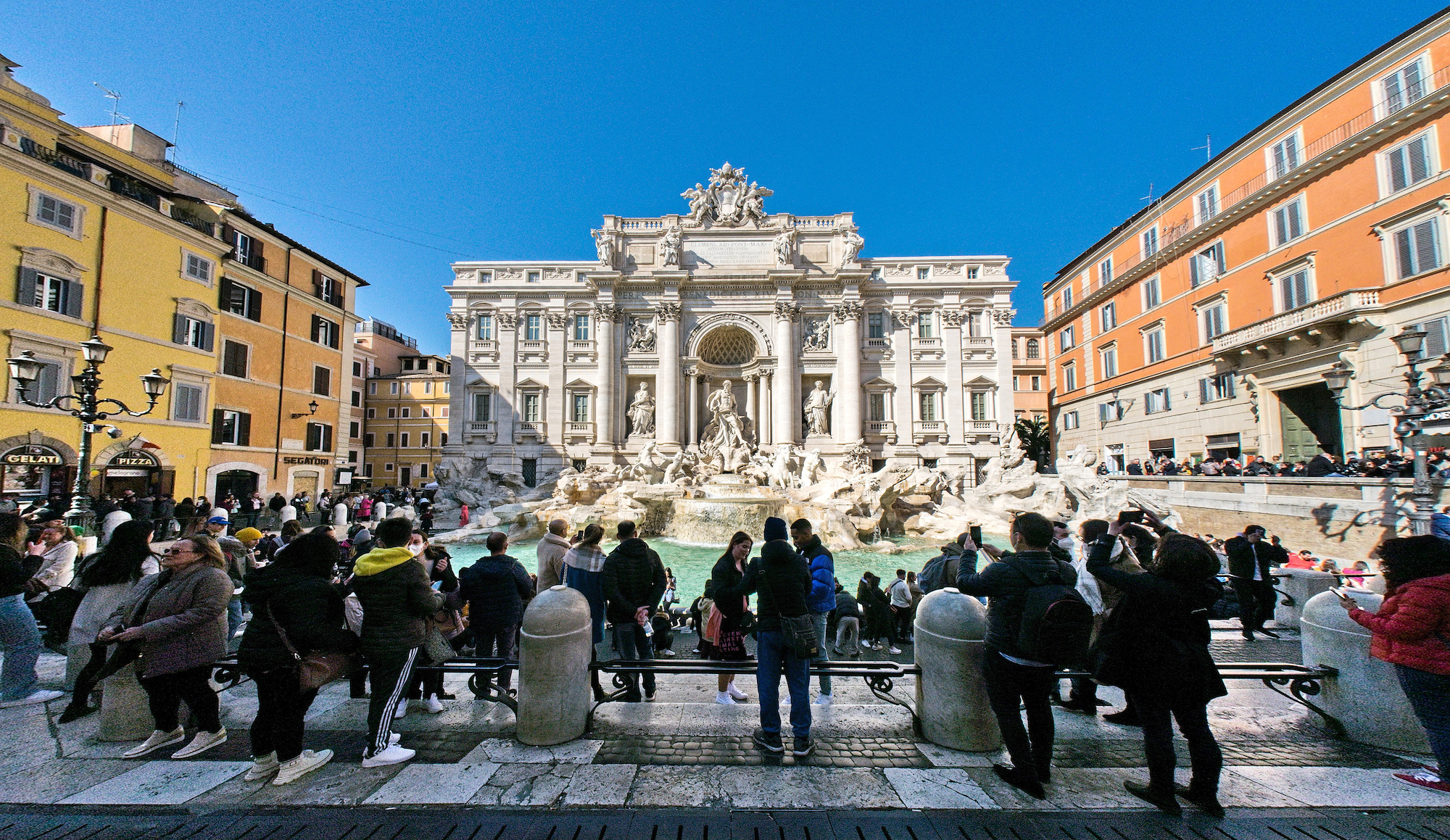 Using a wide angle lens, you need to step much further to the back to get this field of view. With the fisheye, you stand right at the first step line.