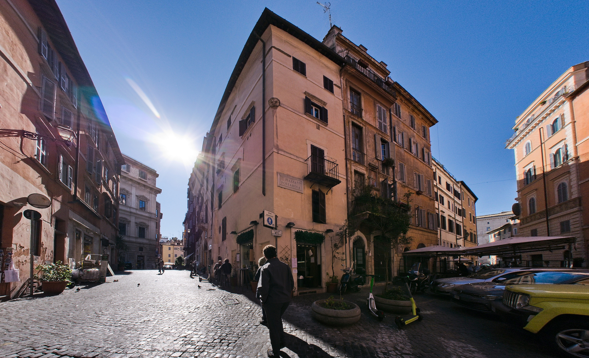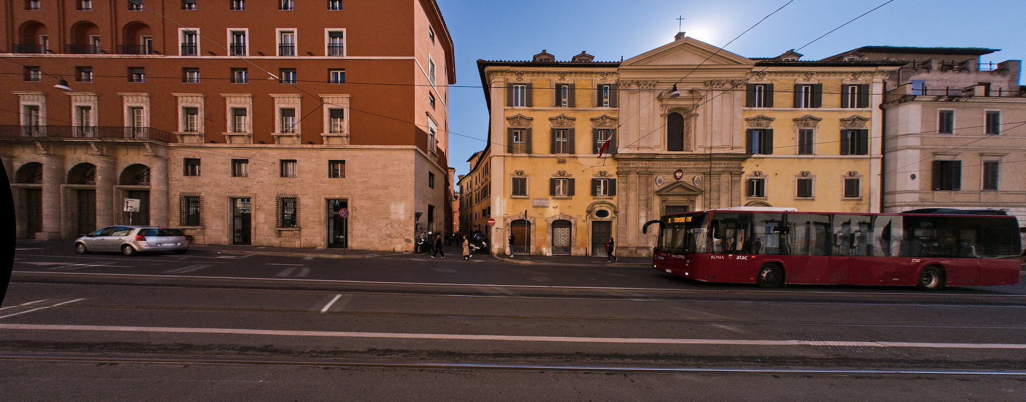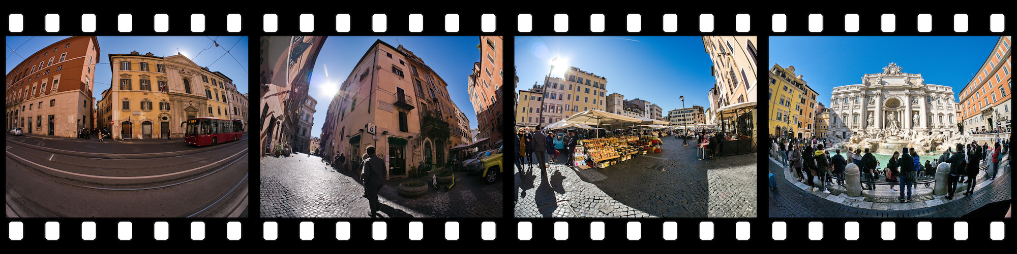 Using a fisheye lens for street pictures as a universal wide angle lens lets you choose how the projection should look like.