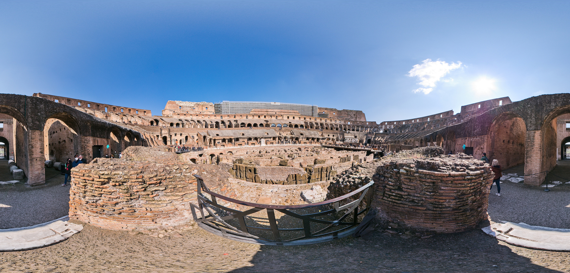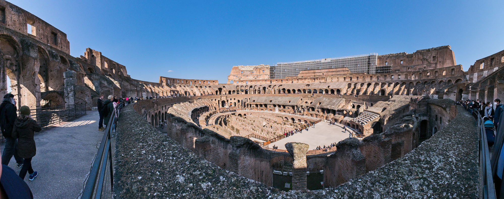 Das Kolosseum ist ein Amphitheater inmitten von Rom. Es ist das größte Amphitheater, das jemals gebaut wurde.