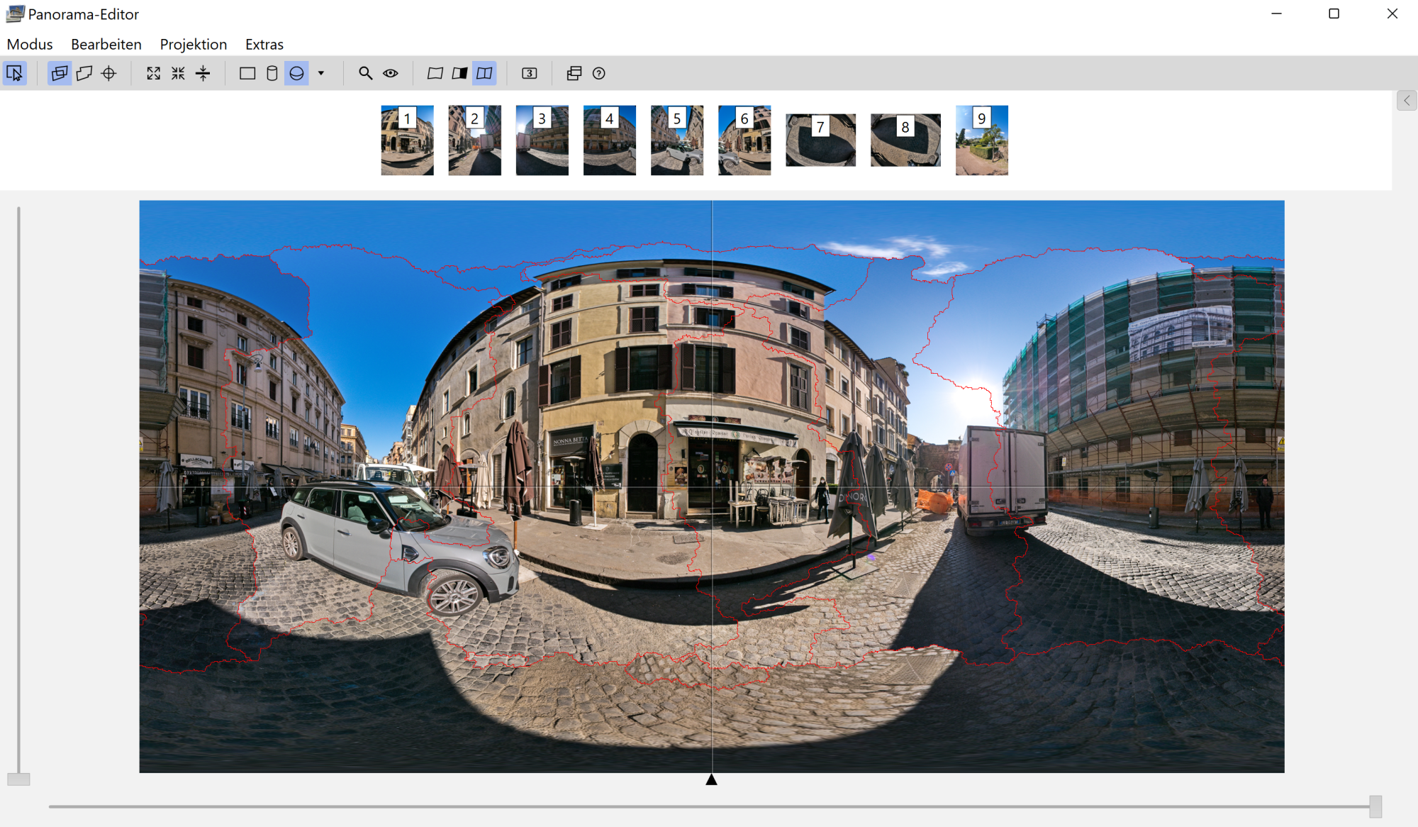 The Zenit is the upward picture and the Nadir the downward picture taken to complete a full 360°×180° panoramic image. But in this set, the Zenit is missing unfortunately. No picture of the sky. Only this silly Truck blocking the street view: