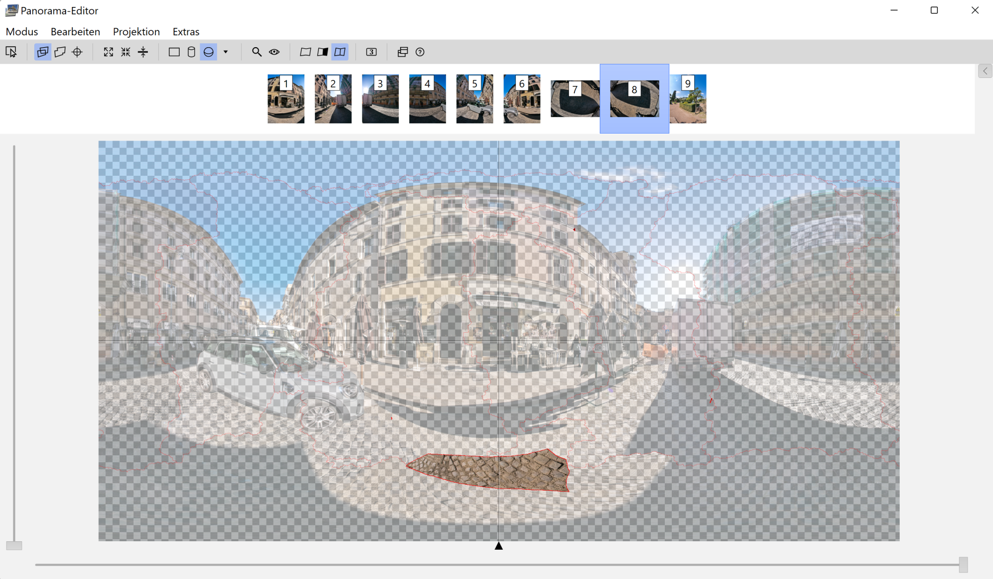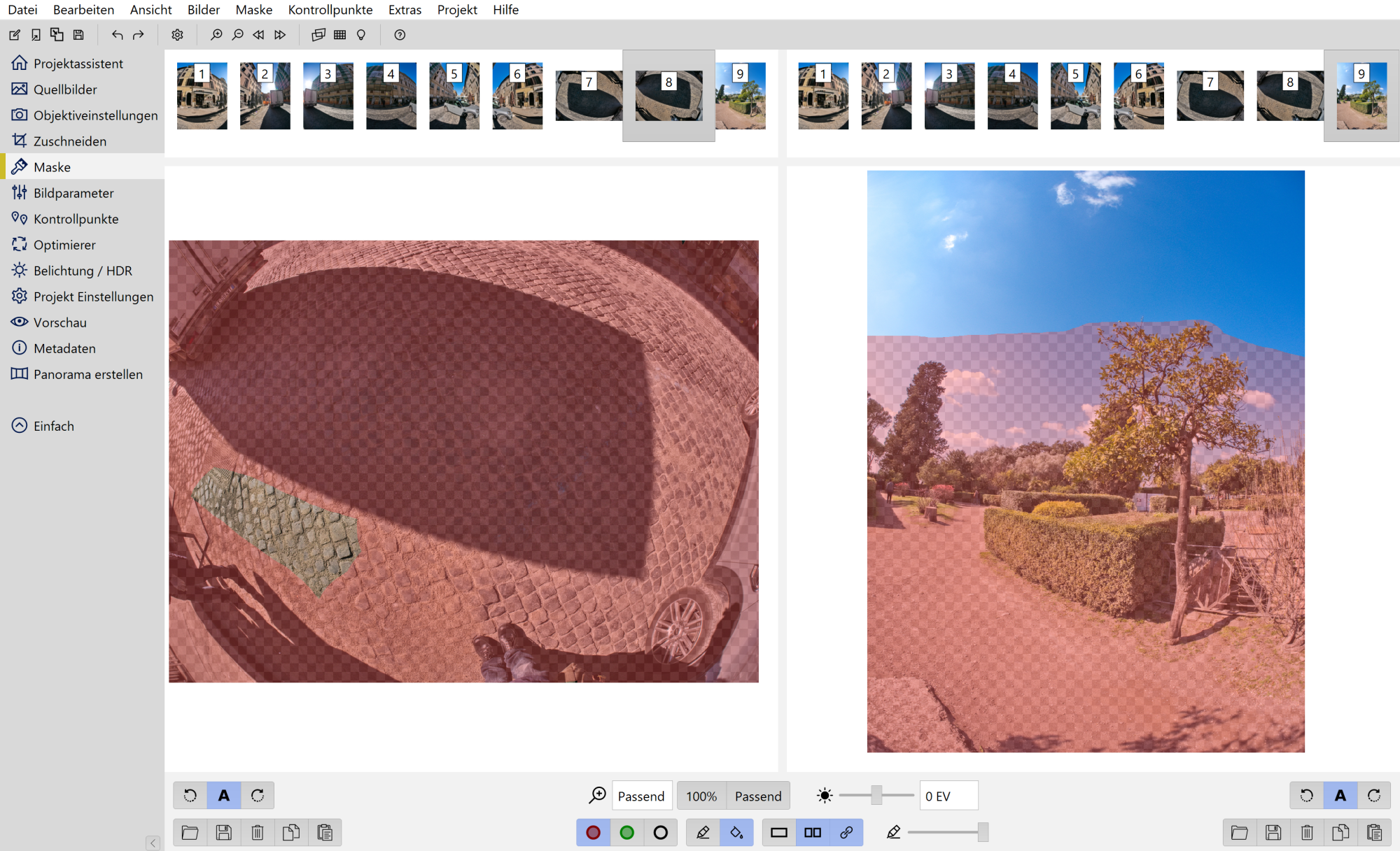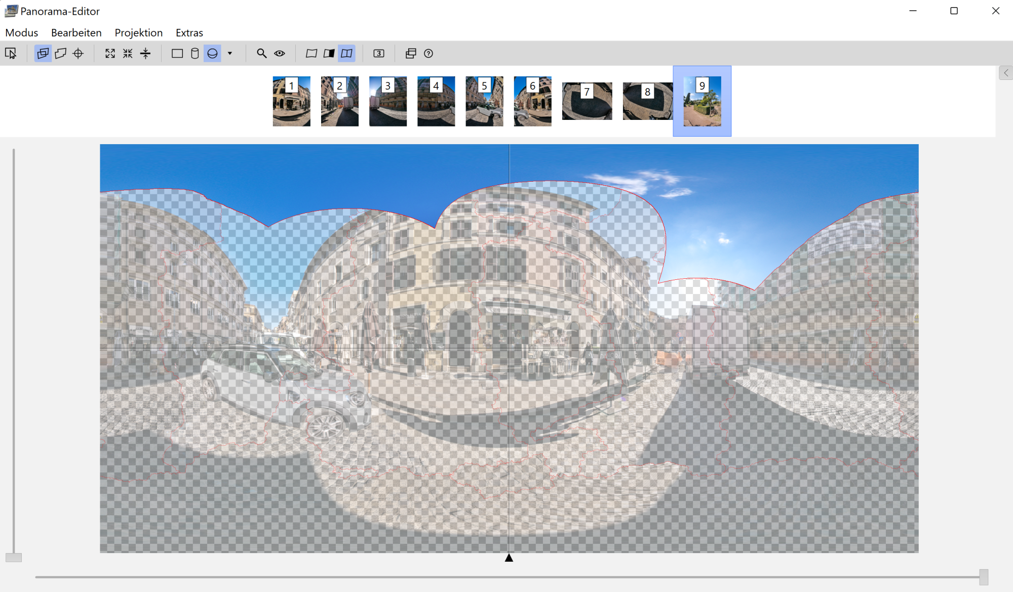 Both the new Zenit and the copy of the Nadir gets a mask to avoid wrong seam lines when the panorama gets completed: