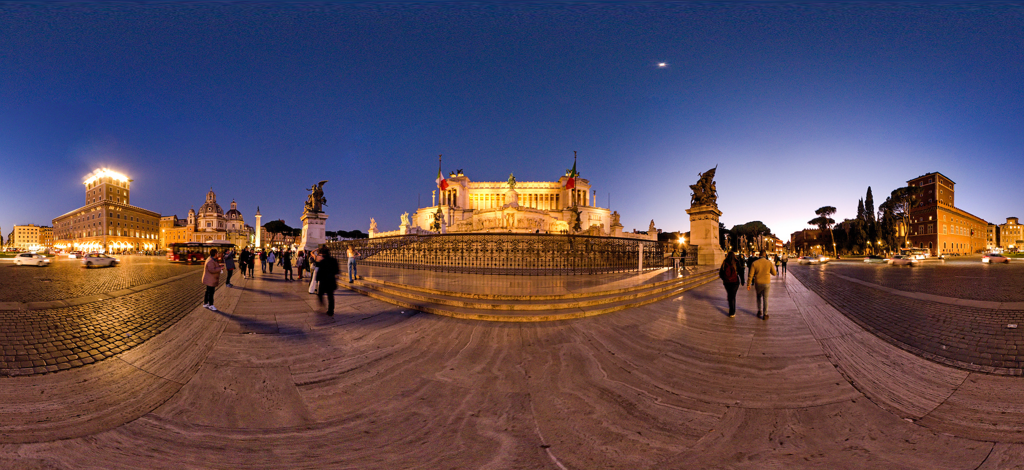 Piazza Venezia at night, Rome, Italy 📅 13. April 2022 · Panorama Piazza Venezia bei Nacht. Interactive Panorama of the Piazza Venezia