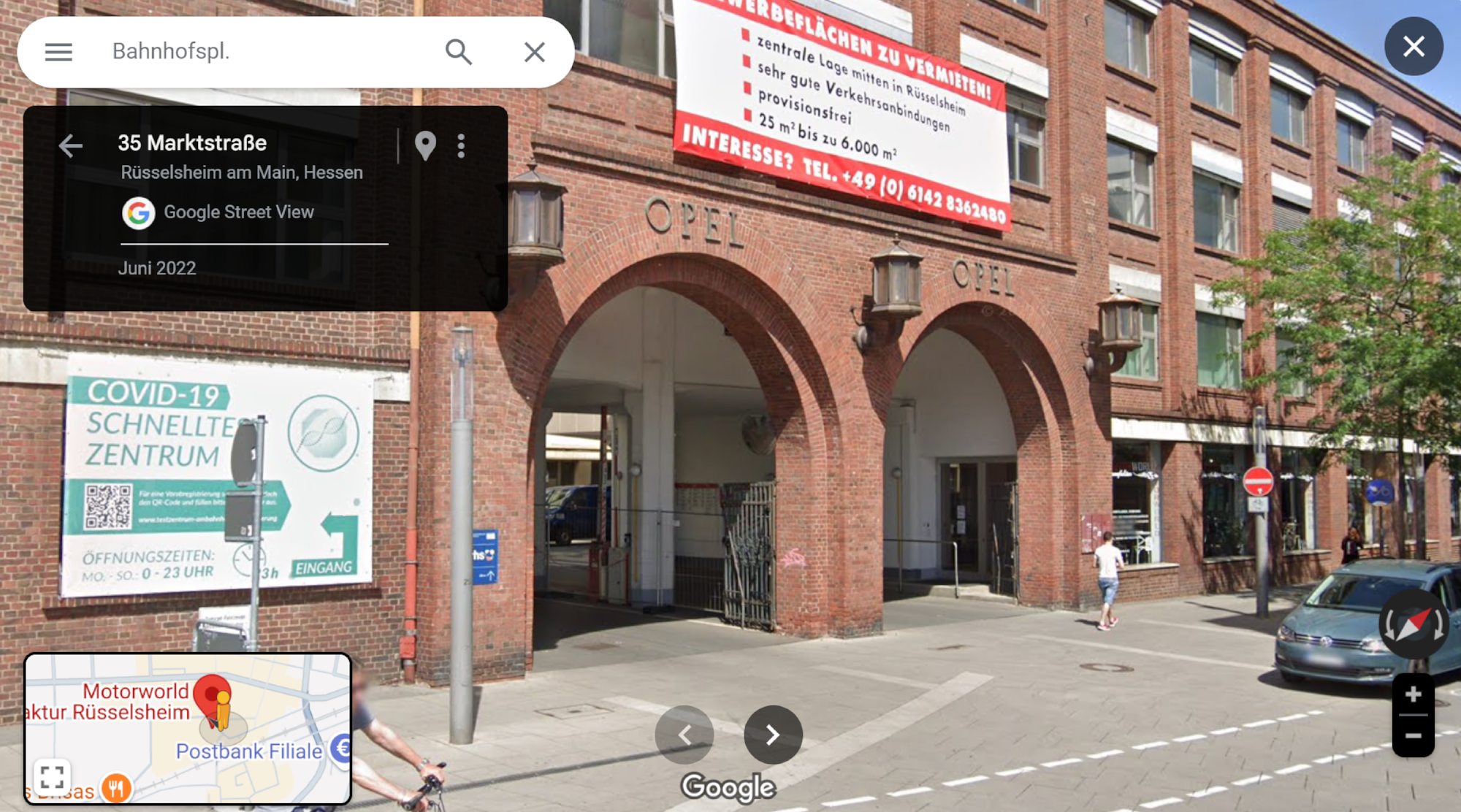 This is where the clip with the Citroën DS was filmed: Marktstraße 35, 65428 Rüsselsheim am Main, Deutschland, Google Map