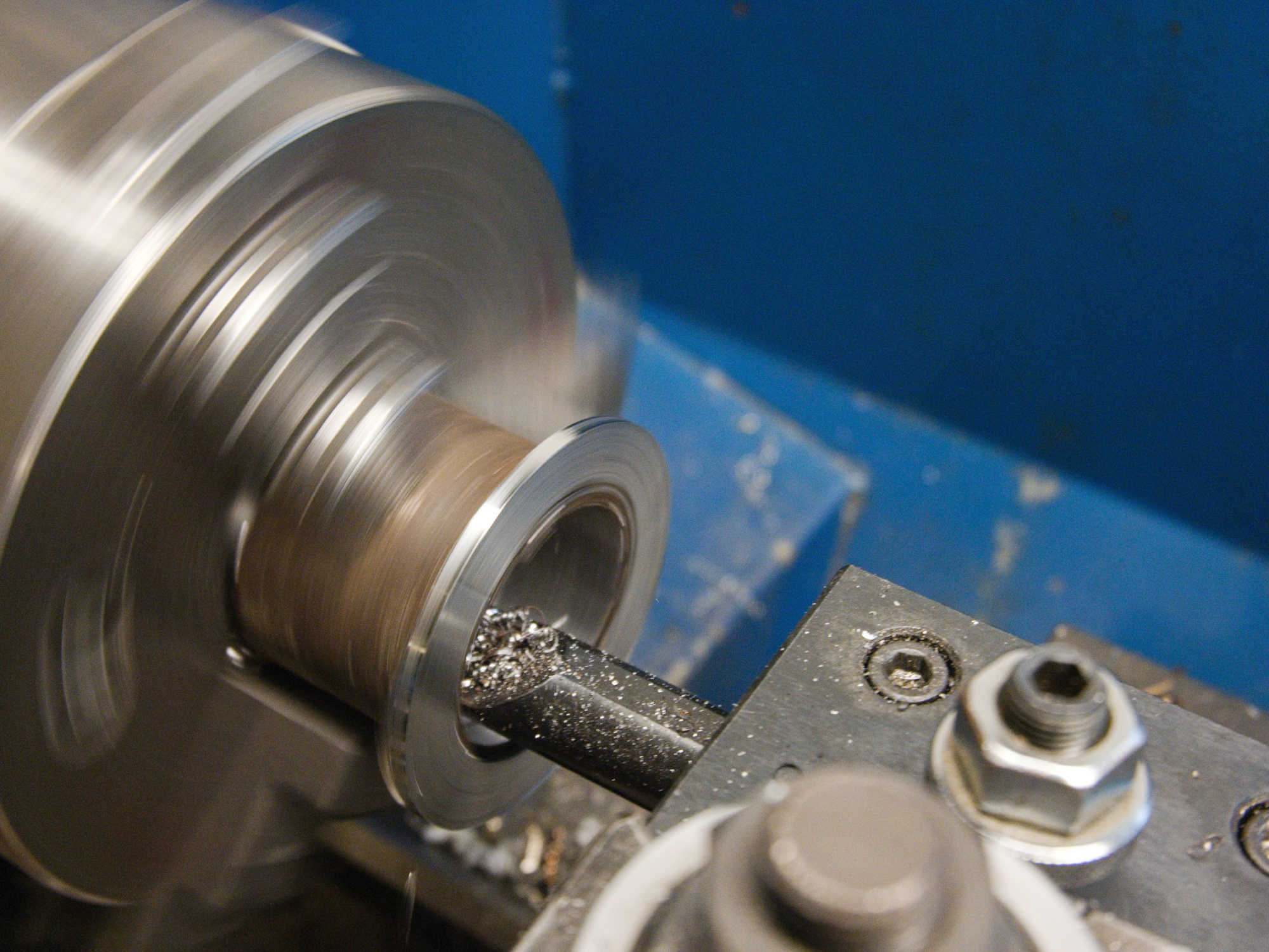 The mounting flange on the gearbox is slanted. Use a counterbore drill to make the mounting flange perpendicular.