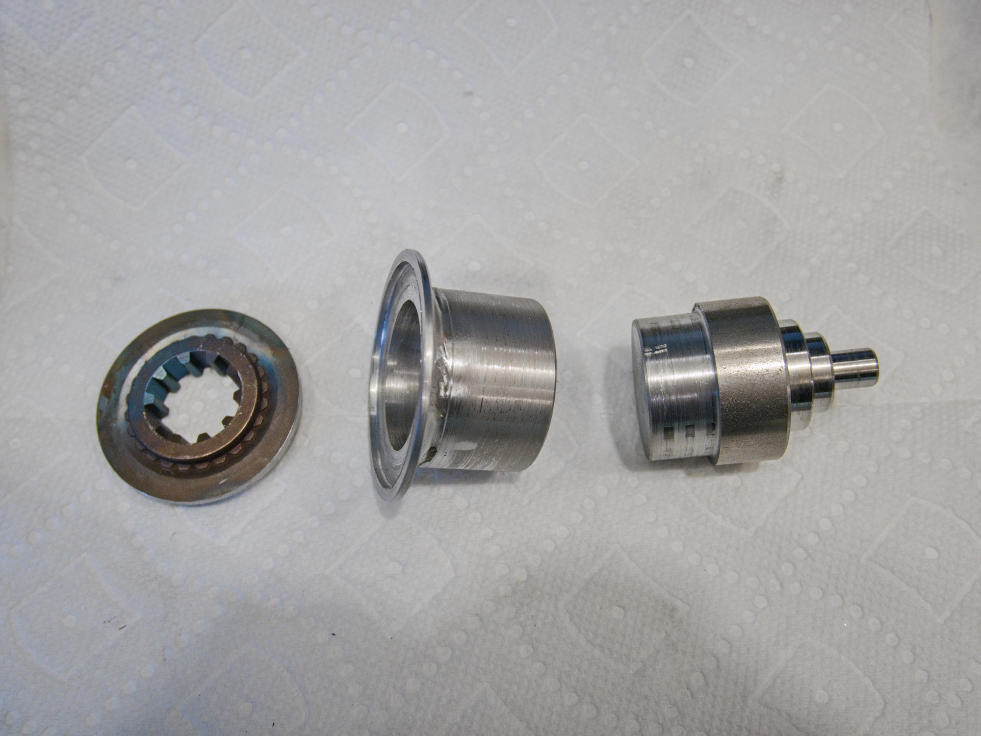 To hold the flange with the spline in place, I'm using an old sidecar suspension holder.