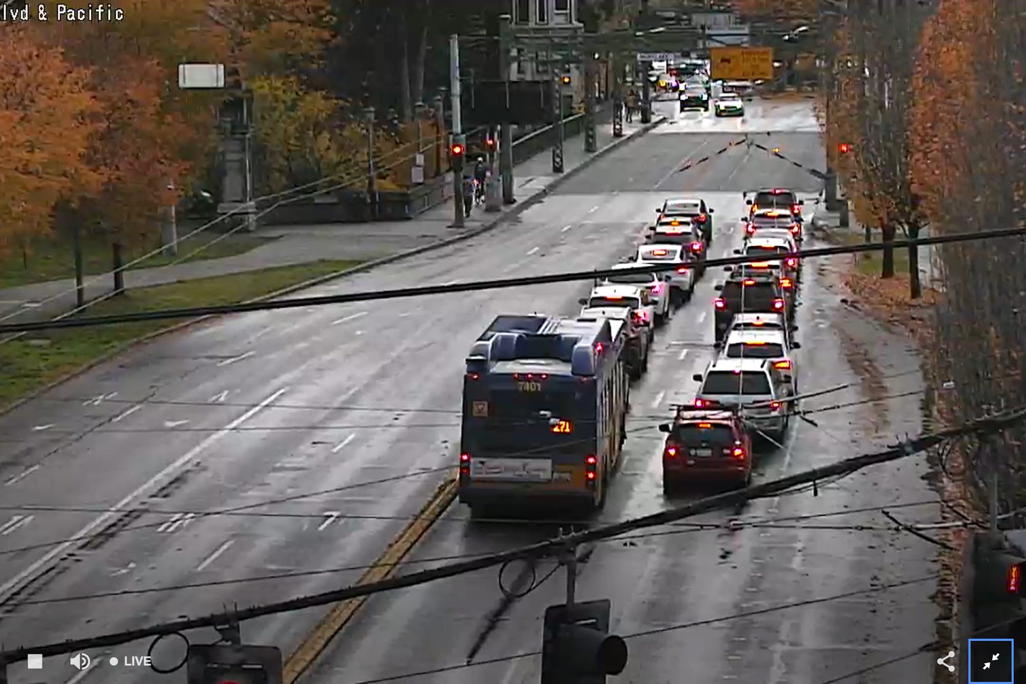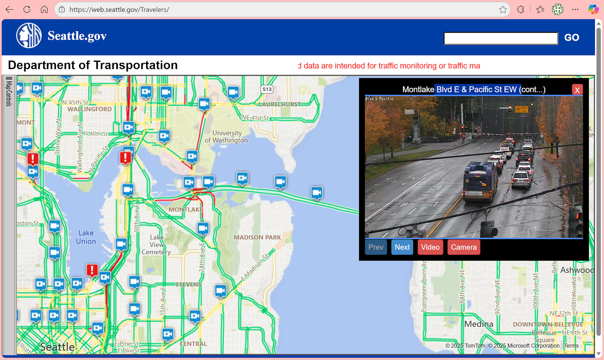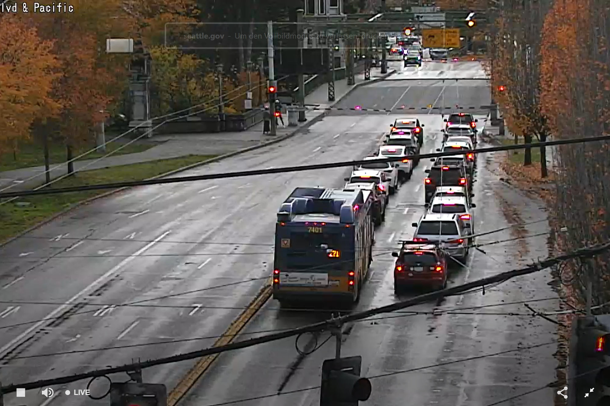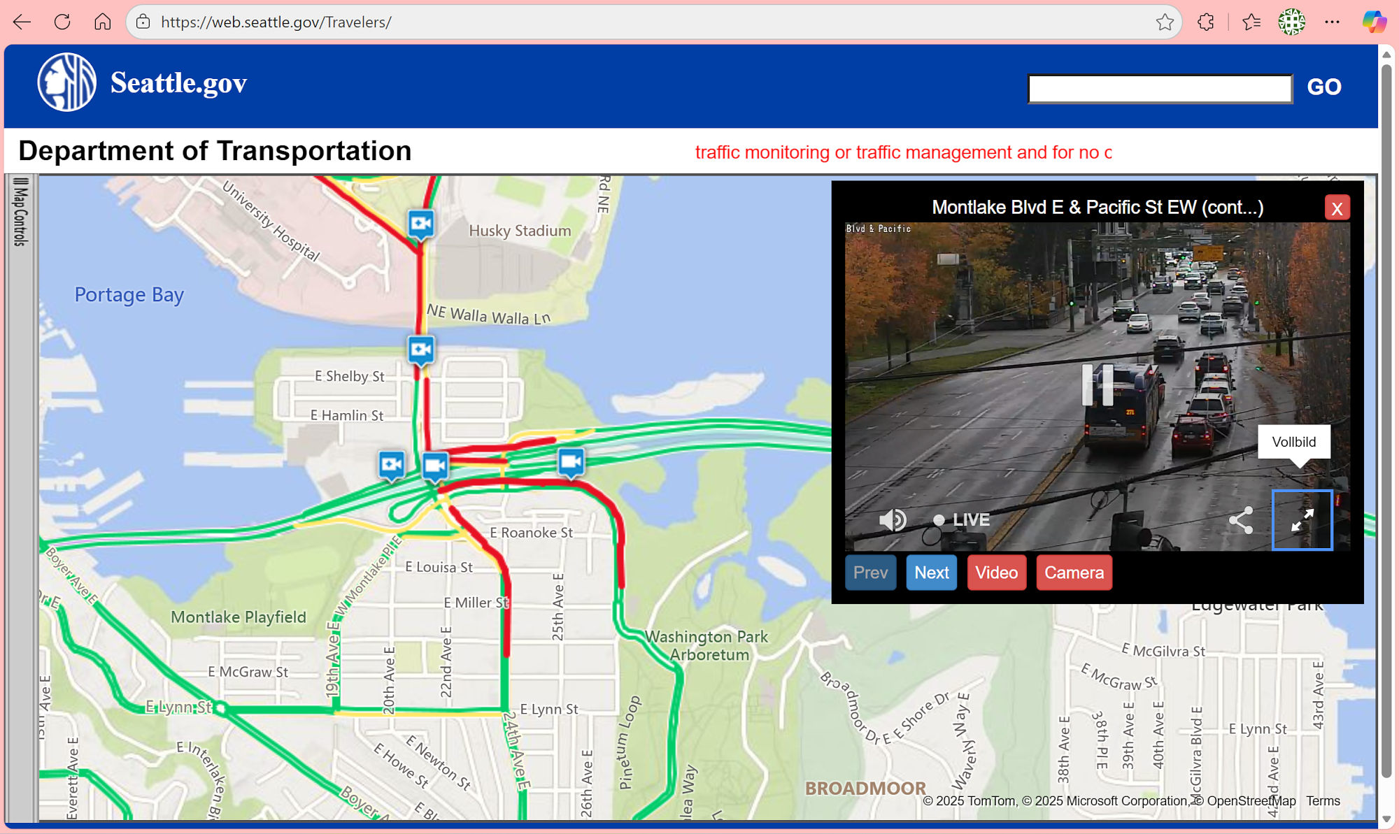A while later, I checked the traffic and noticed the red lines of waiting cars on the map. Sure enough, the bridge was operating. Here are some screenshots from a different perspective: