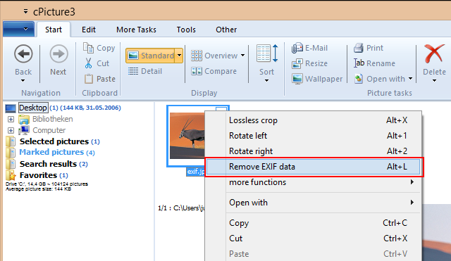 With cPicture you can remove, copy or add picture data segments or even securely remove all existing picture data before the customer gets it.