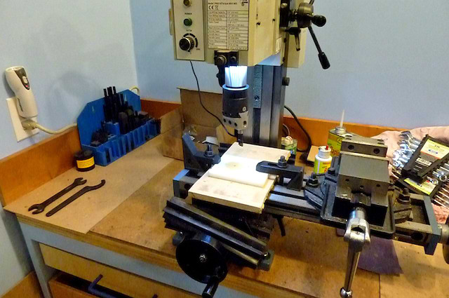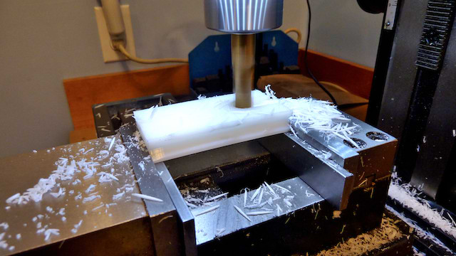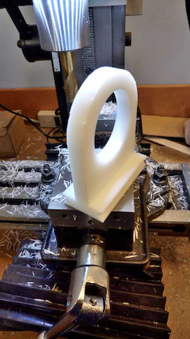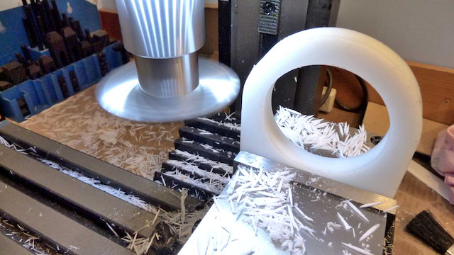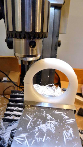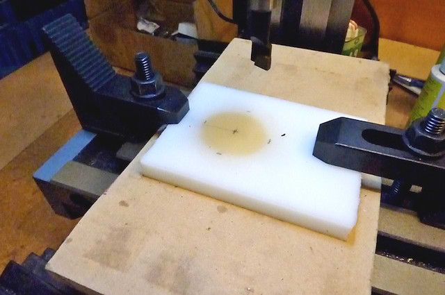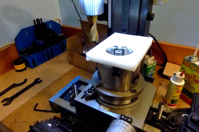 The plate is put into a rotary table to mill the outside: