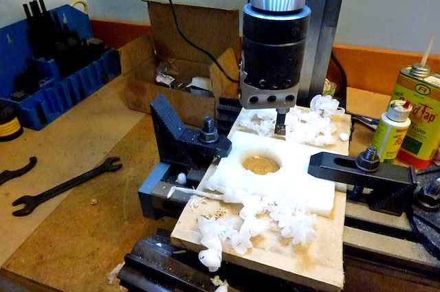 Drilled the 3.5mm hole for the M5 tap: