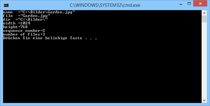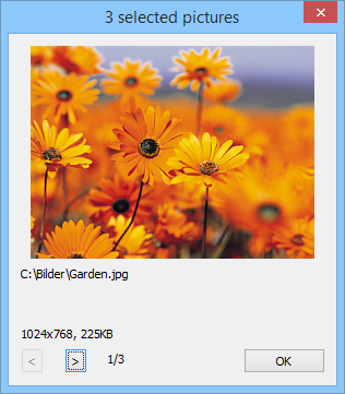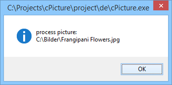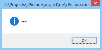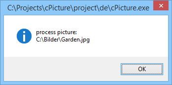 cPicture can supply each picture with additional picture data. This is controlled by the return value of start(...). With this you can easily create external display applications (example above) or simply call a script or an external program. The execution stops if the return value is set to 'false'.