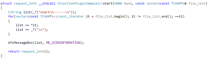 A function plug-ins will be executed in 3 steps. The following example displays a message box for each step.