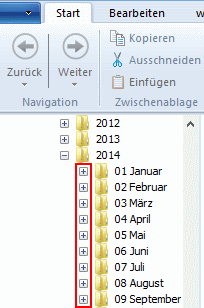Note: All folders for the fast network drive access will have a (+) symbol assigned.