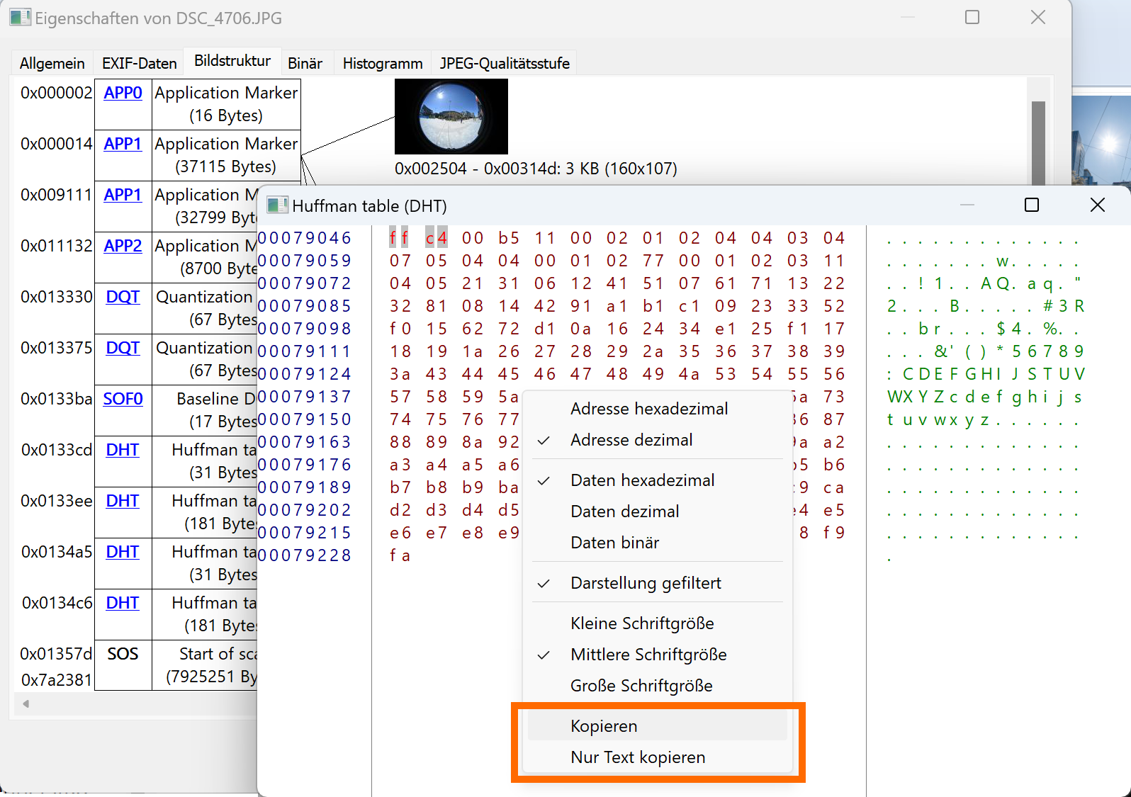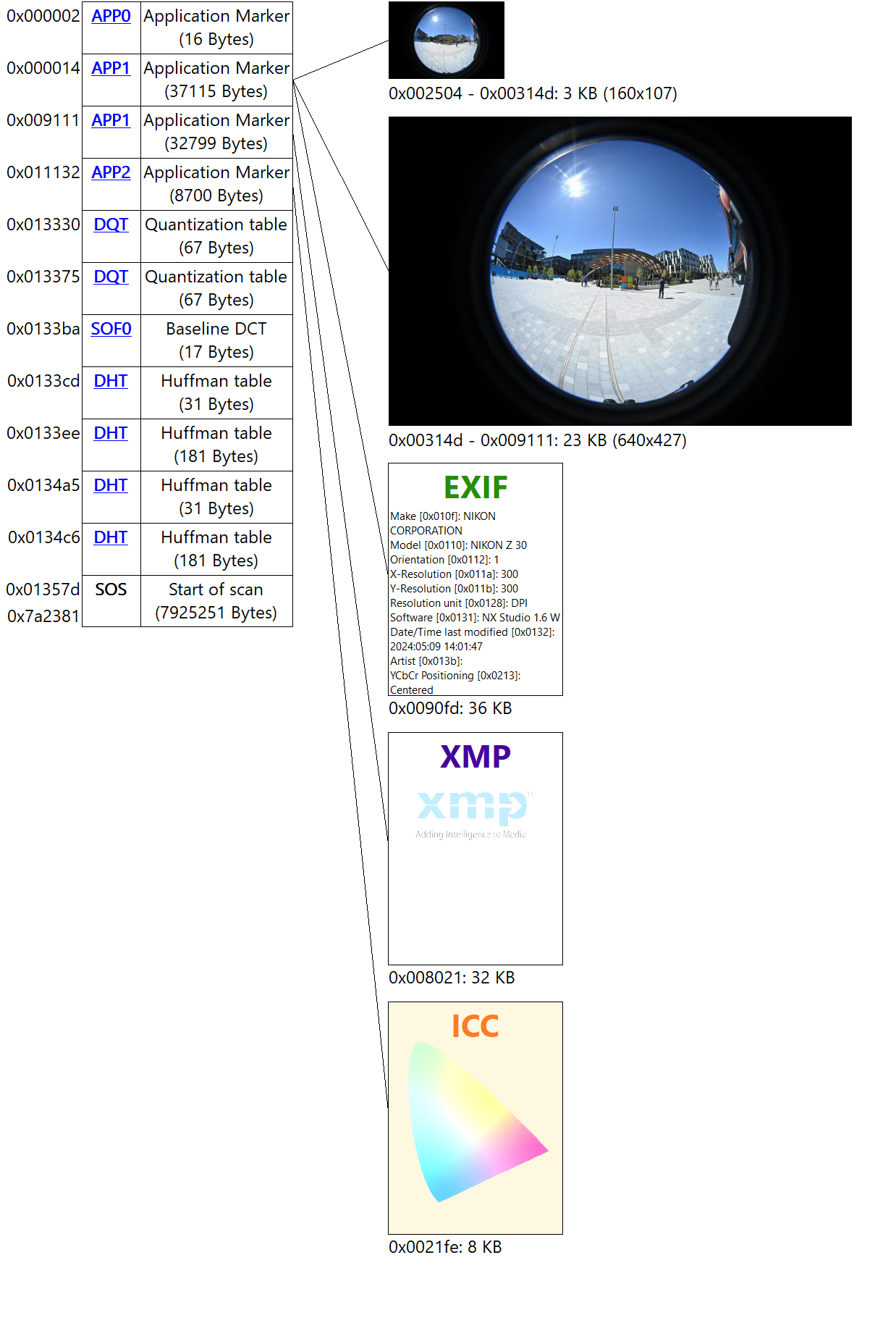 Added new Data types to the JPEG structure view: