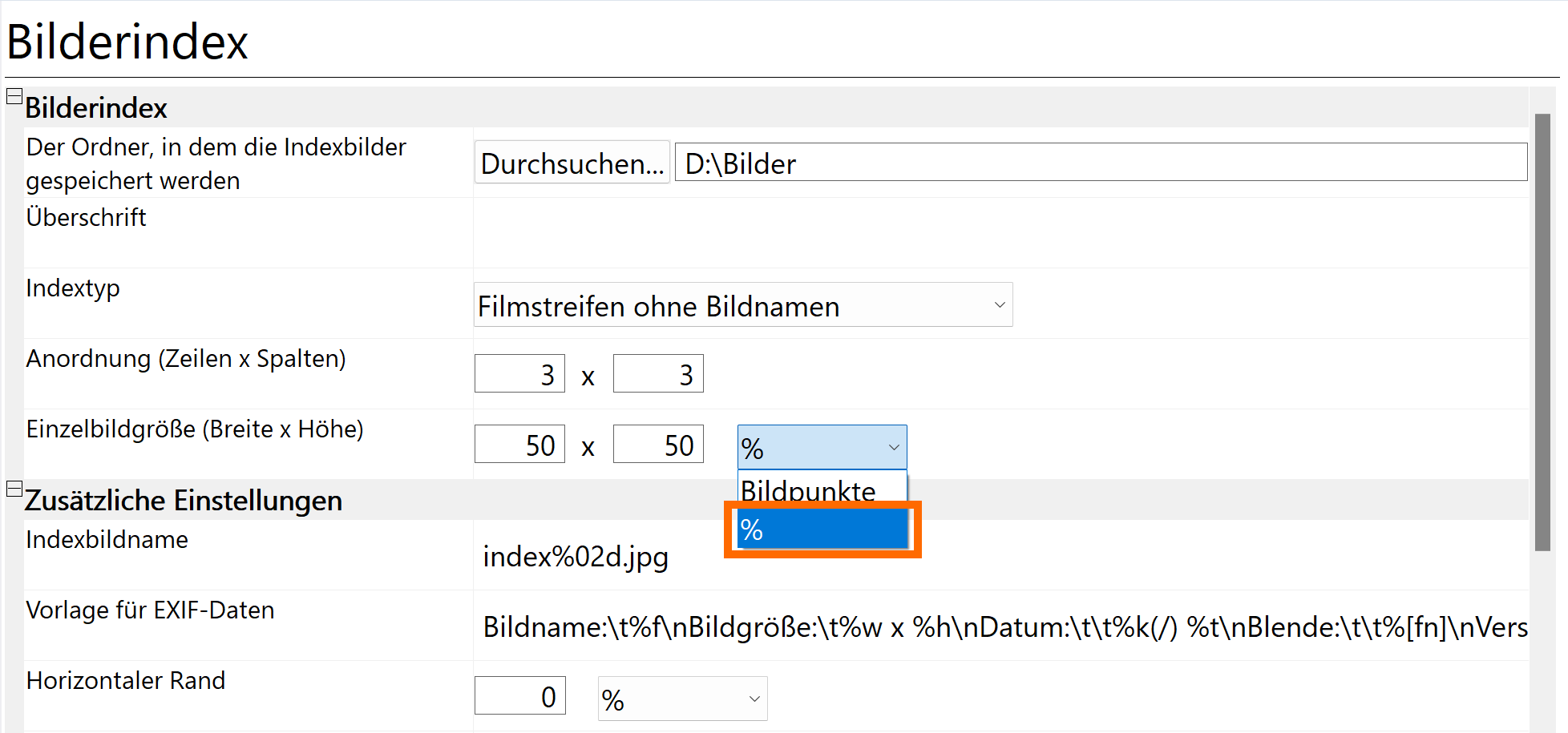 The new relative size option uses the picture size of the selection as a reference to get full framed index prints without specifying the size in pixel: