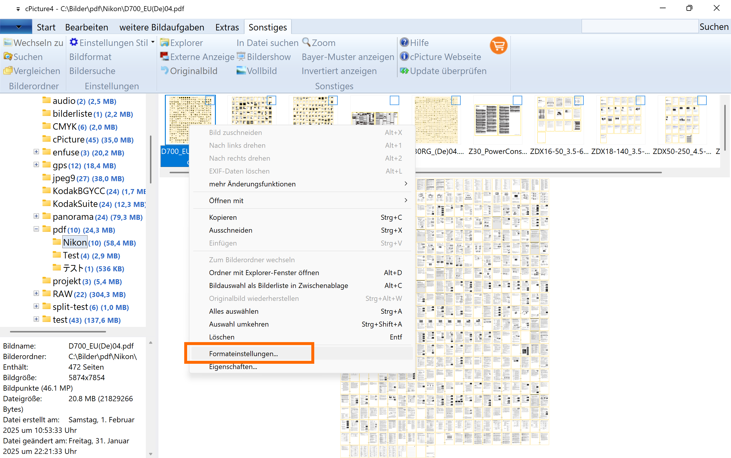 Use the function plugin option in cPicture to download the latest format and function plugins.