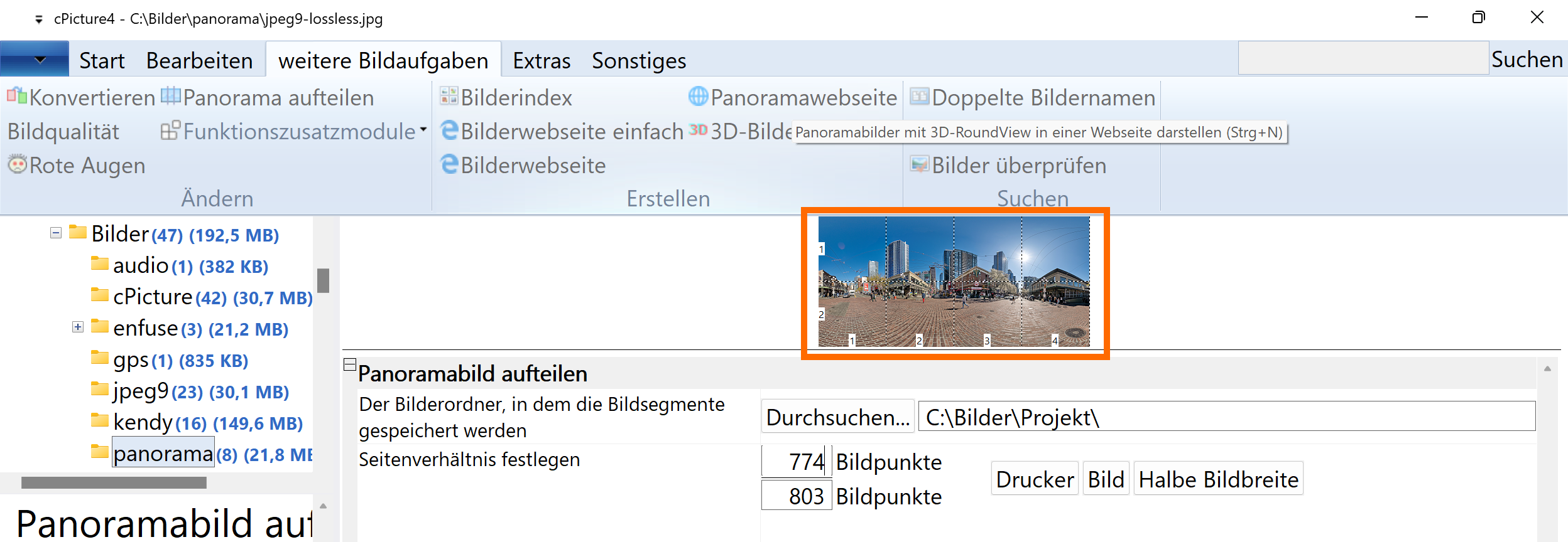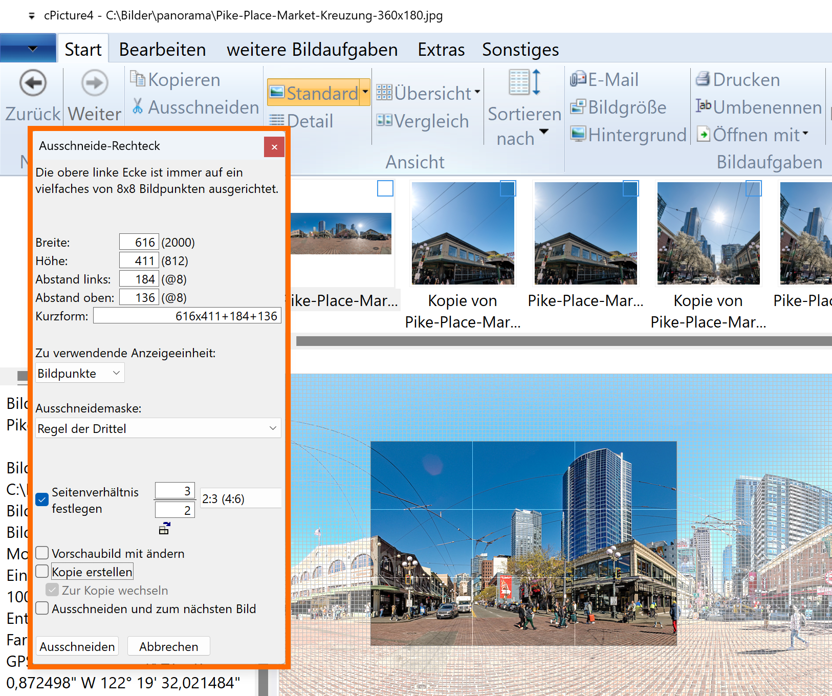 Lossless crop for panoramic pictures or any other segmentation: