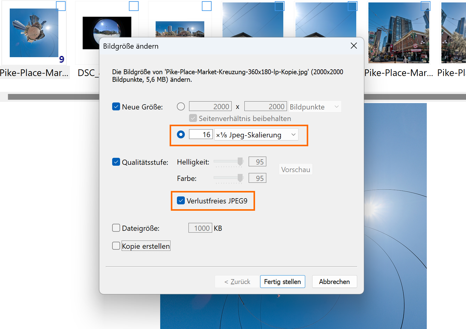 Resizing supports high quality JPEG block scaling from 12.5% to 200%:
